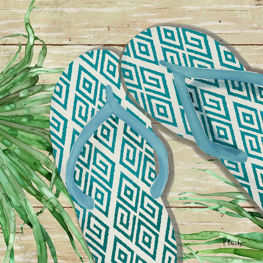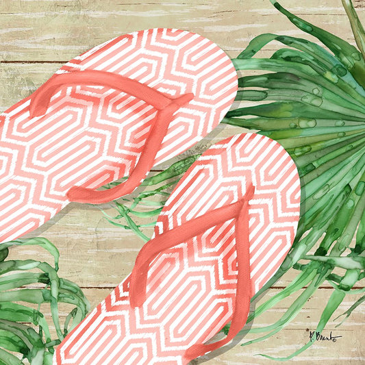 Frond Flip Flops I White Modern Wood Framed Art Print with Double Matting by Brent, Paul