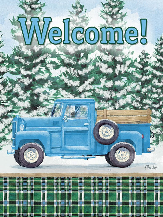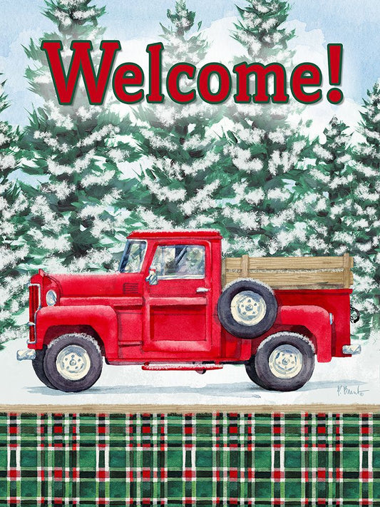 Winter Truck Vertical - Holiday White Modern Wood Framed Art Print with Double Matting by Brent, Paul