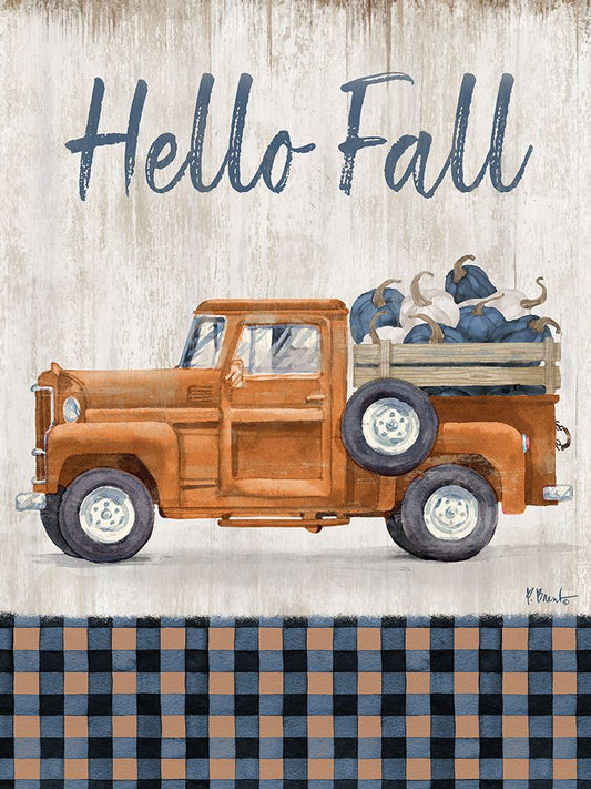 Truckin Into Fall Vertical II - Navy White Modern Wood Framed Art Print with Double Matting by Brent, Paul