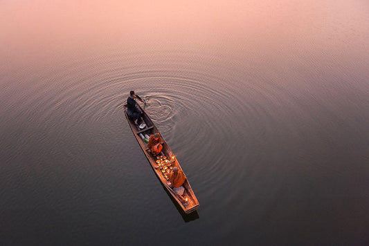 Among The Boats Black Ornate Wood Framed Art Print with Double Matting by Peinado, Chechi