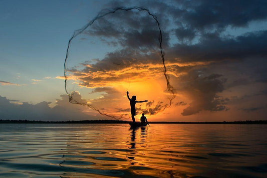 Nets In Sunset Black Ornate Wood Framed Art Print with Double Matting by Whanset, Saravut
