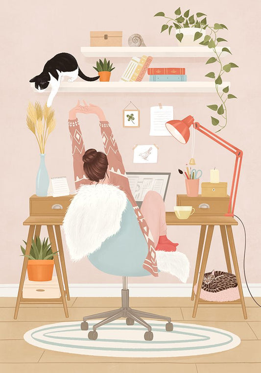 Hygge line art illustration Black Ornate Wood Framed Art Print with Double Matting by Laiz Blursbyai, Rosana
