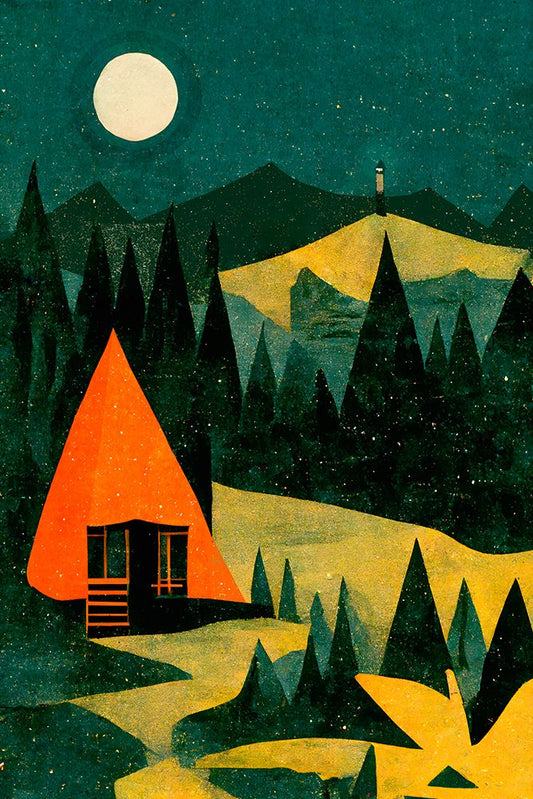 Cabin In The Forest Black Ornate Wood Framed Art Print with Double Matting by Treechild