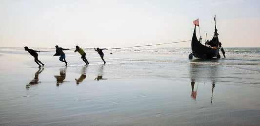 Daily Life Of Fisherman Black Ornate Wood Framed Art Print with Double Matting by Chakraborty, Sudipta