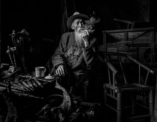 A monk in the monastery Black Ornate Wood Framed Art Print with Double Matting by Yuk Kong, John