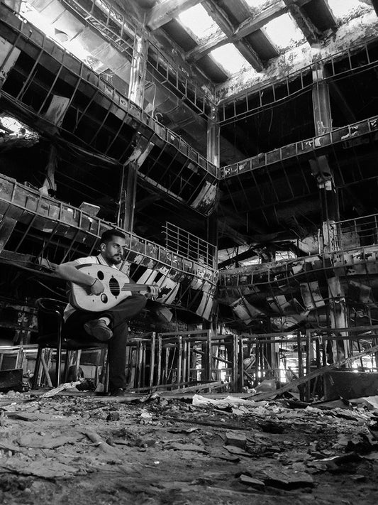 Music Over The Rubble Black Ornate Wood Framed Art Print with Double Matting by Alibaroodi
