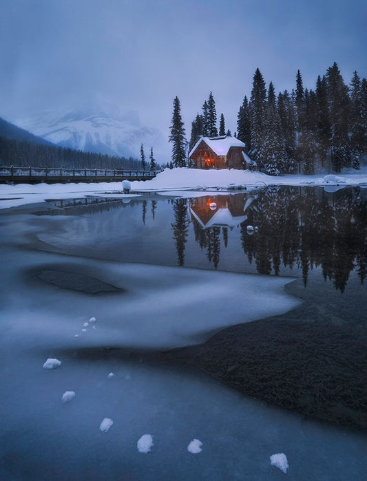 Cottage By The Lake Black Ornate Wood Framed Art Print with Double Matting by Krivec, Ales