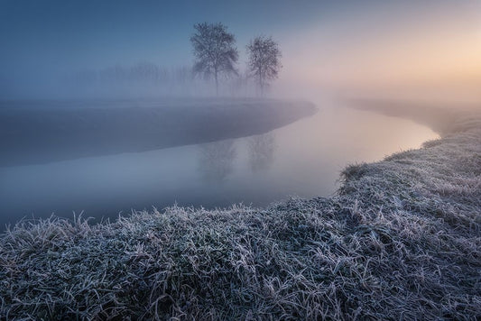 Cold A Bucolic Sunrise Black Ornate Wood Framed Art Print with Double Matting by Rebustini, Luca