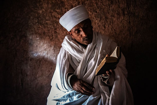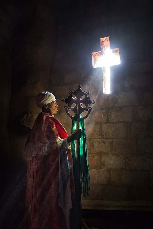 A Priest In Lalibela Black Ornate Wood Framed Art Print with Double Matting by Cavalli, Giovanni