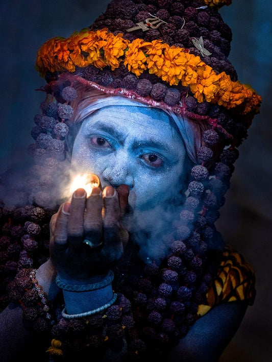 Sadhu Black Ornate Wood Framed Art Print with Double Matting by Oberai, Jassi