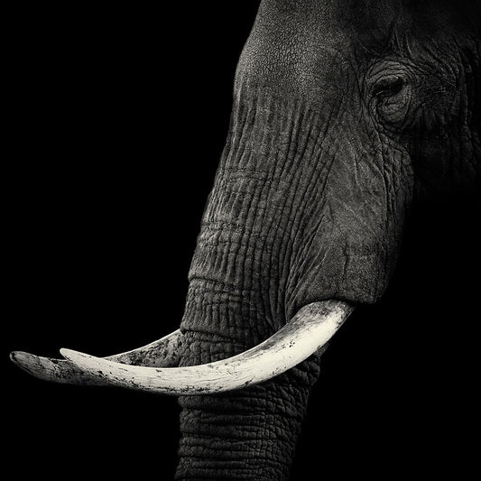 Elephant Profile Black Ornate Wood Framed Art Print with Double Matting by Bertsch, Hannes