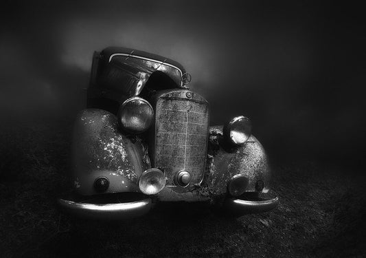 Old Benz In The Fog Black Ornate Wood Framed Art Print with Double Matting by Droste, Holger