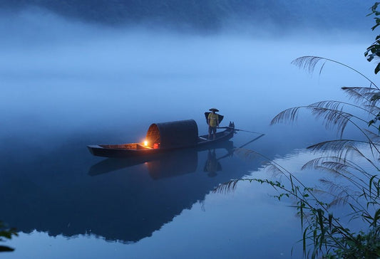 Dong Jiang Lake Black Ornate Wood Framed Art Print with Double Matting by Wong, Adam