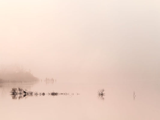 Reeds In The Mist Black Ornate Wood Framed Art Print with Double Matting by Ahern, David