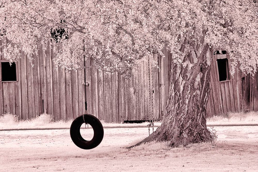 USA-Washington State-Skagit Valley-Old willow tree and tire rope swing Black Ornate Wood Framed Art Print with Double Matting by Eggers, Terry