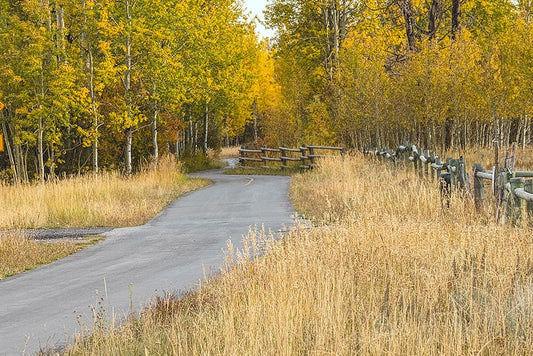 Bike path in autumn-Grand Teton National Park-Wyoming Black Ornate Wood Framed Art Print with Double Matting by Jones, Adam