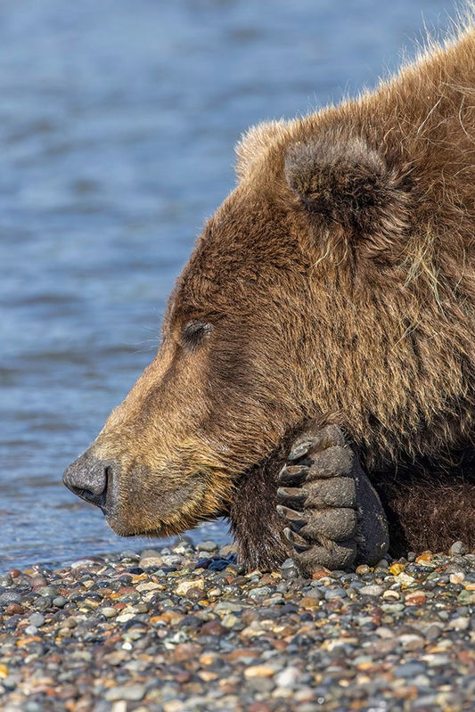 Grizzly bear resting on shoreline-Lake Clark National Park and Preserve-Alaska-Silver Salmon Creek Black Ornate Wood Framed Art Print with Double Matting by Jones, Adam