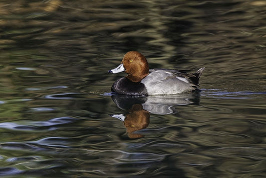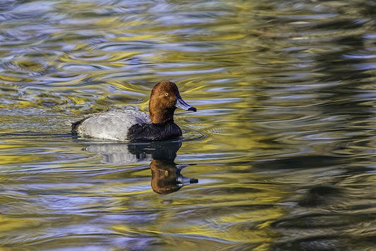 Duck swimming in autumn water Black Ornate Wood Framed Art Print with Double Matting by Jones, Adam