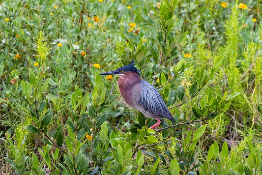 Green Heron-Butorides virescens-standing in shrubs Black Ornate Wood Framed Art Print with Double Matting by Ditto, Larry