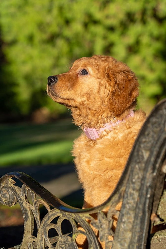 Ten week old Red Golden Retriever puppy-PR Black Ornate Wood Framed Art Print with Double Matting by Horton, Janet