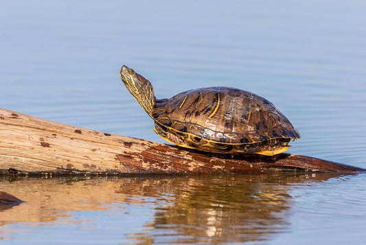 Red-eared Slider(Trachemys scripta elegans-on log in wetland Marion County-Illinois Black Ornate Wood Framed Art Print with Double Matting by Day, Richard and Susan