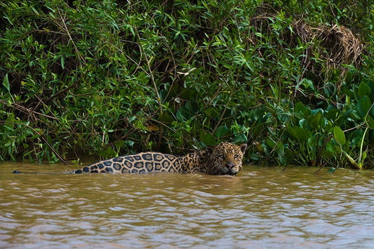 A jaguar-Panthera onca-in the river Black Ornate Wood Framed Art Print with Double Matting by Pitamitz, Sergio