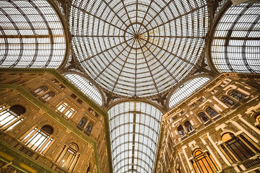 Europe-Italy-Naples-Looking up at Galleria Umberto shopping arcade ceiling Black Ornate Wood Framed Art Print with Double Matting by Jaynes Gallery