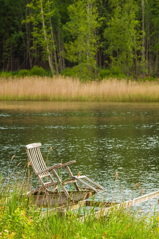 Sweden-Bohuslan-Salto Island-wooden chair Black Ornate Wood Framed Art Print with Double Matting by Bibikow, Walter