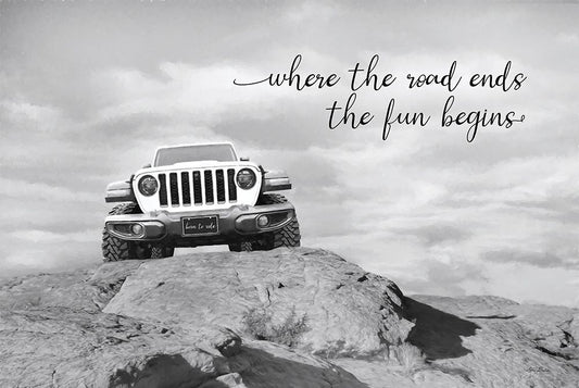 Where the Road Ends the Fun Begins Black Ornate Wood Framed Art Print with Double Matting by Deiter, Lori