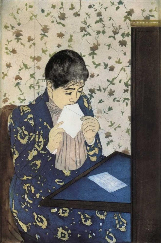 The Letter 1891 Black Ornate Wood Framed Art Print with Double Matting by Cassatt, Mary
