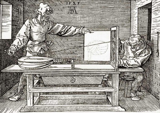 A Man Drawing A Lute Black Ornate Wood Framed Art Print with Double Matting by Durer, Albrecht