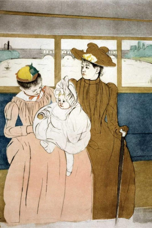 In the Omnibus Black Ornate Wood Framed Art Print with Double Matting by Cassatt, Mary