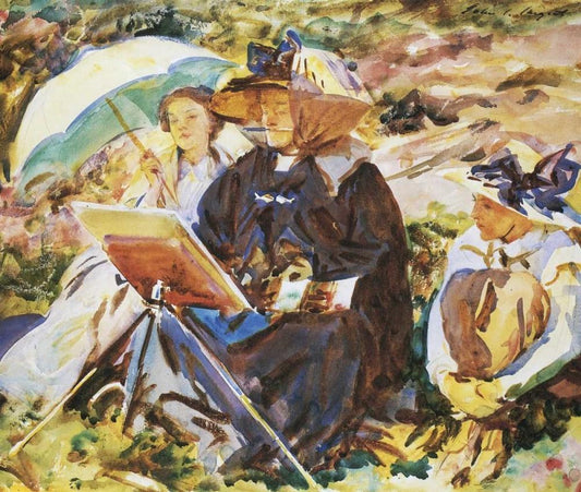 Simplon Pass, the Lesson Black Ornate Wood Framed Art Print with Double Matting by Sargent, John Singer