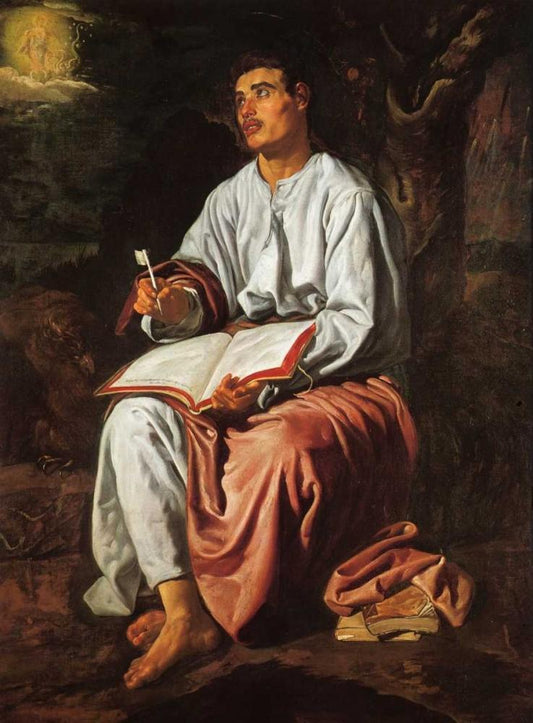 Saint John The Evangelist On The Island Of Patmos Black Ornate Wood Framed Art Print with Double Matting by Velazquez, Diego