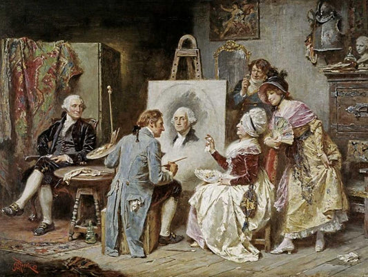 Painter and President Washington Black Ornate Wood Framed Art Print with Double Matting by Ferris, Jean Leon Gerome