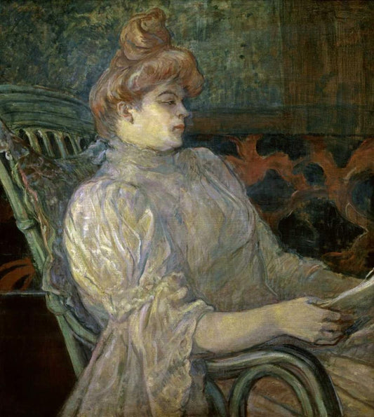 Woman Reading - Femme Lisant Black Ornate Wood Framed Art Print with Double Matting by Toulouse-Lautrec, Henri