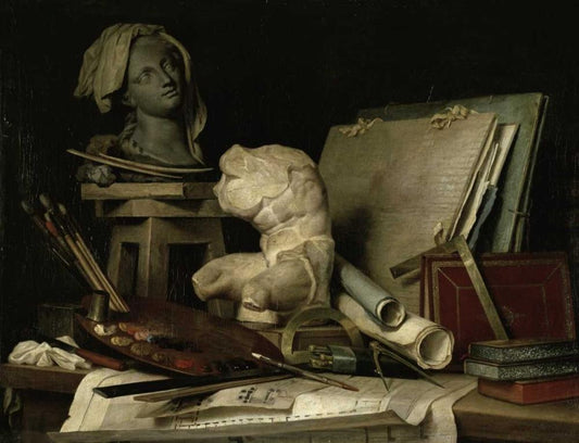 The Attributes of the Arts Black Ornate Wood Framed Art Print with Double Matting by Vallayer-Coster, Anne