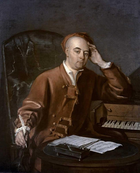The Composer Handel Black Ornate Wood Framed Art Print with Double Matting by Mercier, Philippe