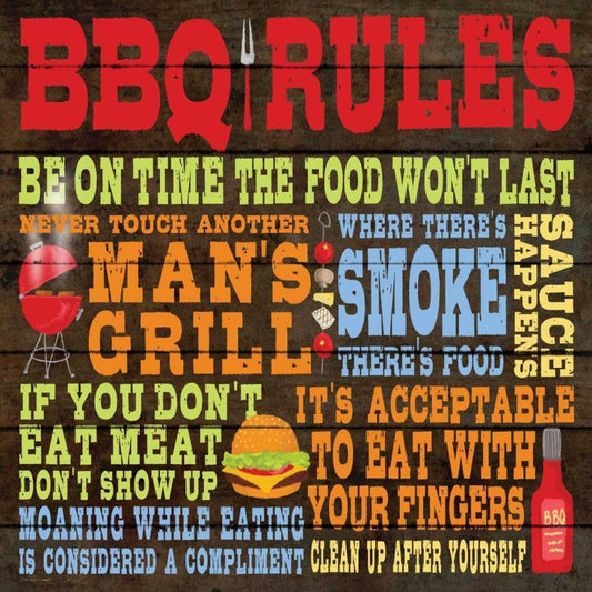 BBQ Rules Black Ornate Wood Framed Art Print with Double Matting by Marrott, Stephanie