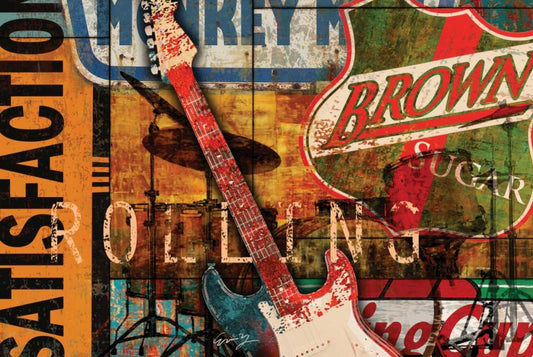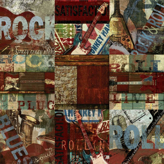 ROCK and ROLL 9-PATCH Black Ornate Wood Framed Art Print with Double Matting by Yang, Eric