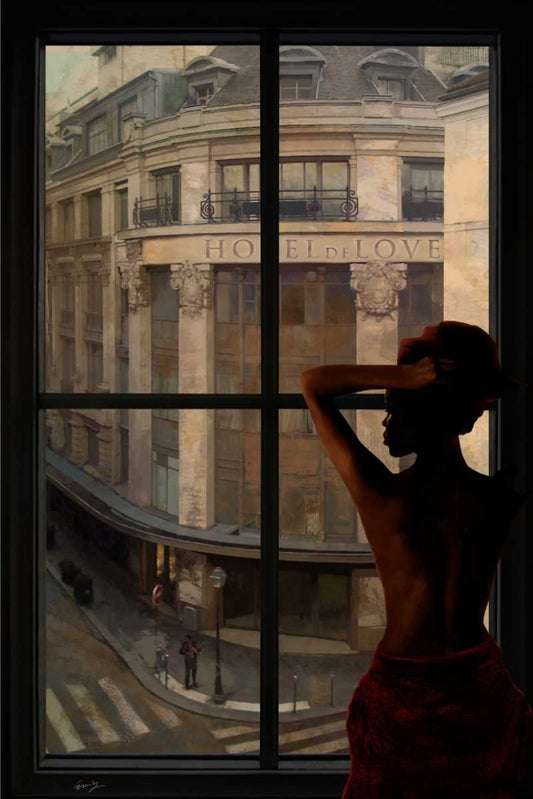 HOTEL DE LOVE Black Ornate Wood Framed Art Print with Double Matting by Yang, Eric