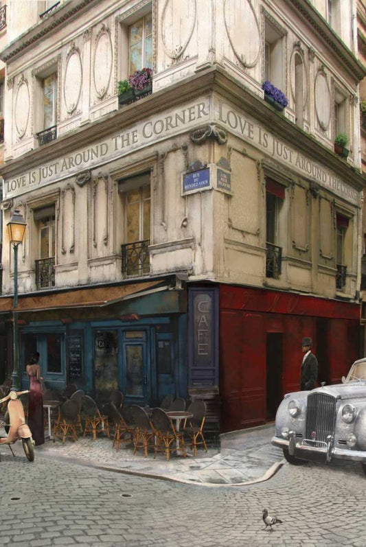 LOVE IS JUST AROUND THE CORNER Black Ornate Wood Framed Art Print with Double Matting by Yang, Eric