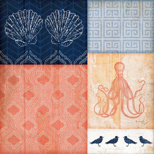 Coral and Navy Coastal Black Ornate Wood Framed Art Print with Double Matting by Pugh, Jennifer