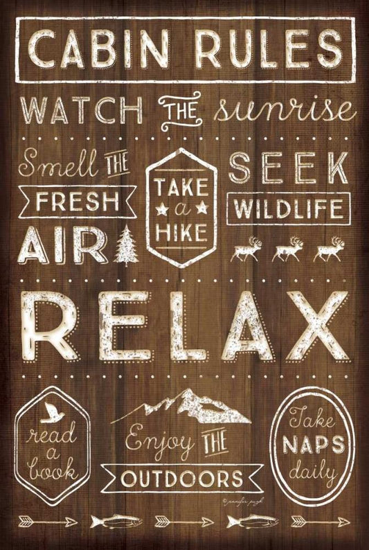 Cabin Rules Black Ornate Wood Framed Art Print with Double Matting by Pugh, Jennifer