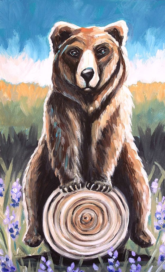 Bear on a Log Black Ornate Wood Framed Art Print with Double Matting by Tyndall, Elizabeth
