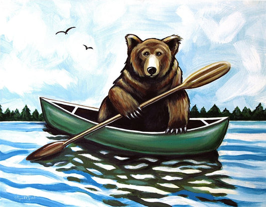 Bear in a Canoe II Black Ornate Wood Framed Art Print with Double Matting by Tyndall, Elizabeth