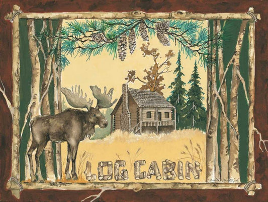 Log Cabin Moose Black Ornate Wood Framed Art Print with Double Matting by Phillips, Anita