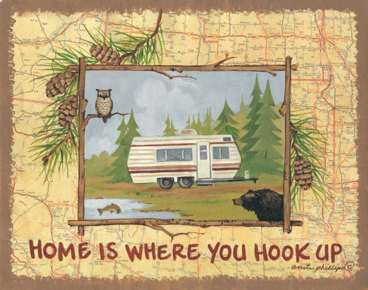 Home is Where You Hook Up Black Ornate Wood Framed Art Print with Double Matting by Phillips, Anita