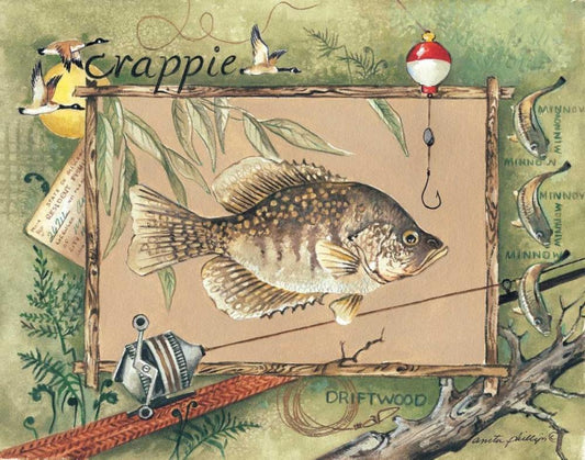 Crappie Black Ornate Wood Framed Art Print with Double Matting by Phillips, Anita