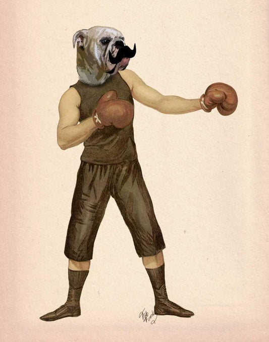 Boxing Bulldog Full Black Ornate Wood Framed Art Print with Double Matting by Fab Funky
